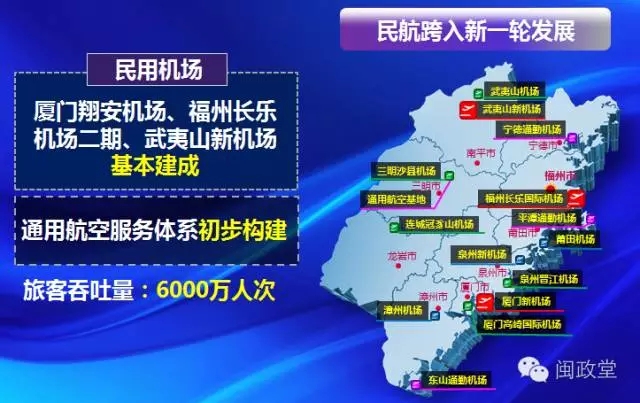 民航計(jì)劃完成投資800億,廈門翔安機(jī)場(chǎng)、福州長(zhǎng)樂(lè)機(jī)場(chǎng)二期、武夷山新機(jī)場(chǎng)基本建成,通用航空服務(wù)體系初步構(gòu)建。全省民航旅客吞吐量突破6000萬(wàn)人次。